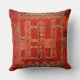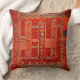 Oriental rug design in orange - an antique image is printed on this throw pillow - an illustration from an antique book" "Oriental rugs, antique and modern" (1922)- it was edited and applied on this item by Alma Wad - "nomadic designs prevalent throughout Anatolia. Reciprocal latch-hooksform the background of the central field, on which are three upright panels containing octagonal discs; and latch-hooks surrounding lozenges and forming what may originally have been intended to represent the tree of life appear almost as conspicuously in the border. There are also combs, knots of destiny, and innumerable S-forms. The panel sat the upper and lower ends of the field and the reciprocal Vandykesare most suggestive of Ladiks, but in the place of pomegranates at the ends of the upright stalks are small checquered squares. Bergamos with such patterns are now rarely seen. "