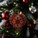 Oriental rug pattern in dark red and cream - an ancient picture PRINTED on this heart-shaped ceramic ornament - a timeless design with intricate details from an old book - altered and put on numerous products by Alma Wad . Excellent option for anybody looking to add some color and warmth to their Xmas tree .
