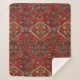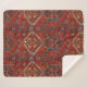 Oriental rug design in red and blue - an antique image is PRINTED on this Sherpa blanket - illustration from an antique book- it was edited and applied on this item by Alma Wad