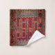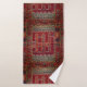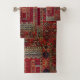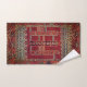 Oriental rug design in deep hues of oranges - an antique image is printed on this item - illustration from an antique book" "Oriental rugs, antique and modern" (1922)- it was edited and applied on this bath towel set by Alma Wad - "nomadic designs prevalent throughout Anatolia. Reciprocal latch-hooks form the background of the central field, on which are three upright panels containing octagonal discs; and latch-hooks surrounding lozenges and forming what may originally have been intended to represent the tree of life appear almost as conspicuously in the border. There are also combs, knots of destiny, and innumerable S-forms. The panel sat the upper and lower ends of the field and the reciprocal Vandykes are most suggestive of Ladiks, but in the place of pomegranates at the ends of the upright stalks are small checquered squares. Bergamos with such patterns are now rarely seen. " description of the detailed pattern from the book mentioned above .