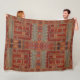 This unique fleece blanket combines warmth, artistry, and heritage in one timeless piece. Featuring an Oriental rug design in rich oranges, the antique image is printed directly onto the blanket, drawing inspiration from vintage illustrations of nomadic designs prevalent throughout Anatolia. The pattern includes reciprocal latch-hooks, octagonal discs, lozenges, stylized Trees of Life, as well as symbolic motifs like combs, knots of destiny, and countless S-forms.