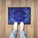 Add a touch of antique elegance to your home with this Oriental Rug – Grunge Blue Look doormat. Featuring a Persian-style rug illustration sourced from an antique book and reimagined with a modern grunge-blue filter by Alma Wad, this printed doormat showcases a central medallion surrounded by intricate geometric and curvilinear motifs. The detailed design, including floral patterns and flowing vines, brings the rich tradition of Persian craftsmanship into a contemporary home accessory. Perfect for adding character to entryways, living spaces, or as a thoughtful gift for rug and art enthusiasts.