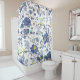 Blue oriental floral and bird pattern shower curtain.