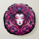 Oriental vector abstract Geisha fractal pink waves Round Pillow