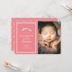 This cute and modern baby shower invitation features a portrait of a baby with a mother origami paper crane and a little baby origami paper crane on salmon pink / red background framed by white borders. The reverse side features salmon pink / red and white geometric pattern. The crane is a symbol of happiness and eternal youth in asian cultures. The design of continuous circles on the reverse symbolizes happiness with a harmony and a relationship. Change the background color and personalize it for your needs. You can find more matching products at my store.