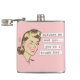 Well made flask, a little better than I had expected. Flask came in clear plastic box which gave it a nice presentation when I took it out of the zazzle packaging. Image is not printed on flask but on sticker. Don't know how this will hold up I haven't used it yet. This would make a Great gift! I plan to purchase more for friends! Cheers. I thought a little brighter than computer. Very crisp, writing wasn't