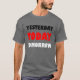 My 11 yo wore adult XL (5’7” 165#). The 8yo is small framed. She wore adult small and tied it in the back. Grandma wore adult large with long sleeve shirt underneath. Tall girl adult medium. Dark haired male adult large. Good quality dark Heather gray, Gildan brand shirt. -it was next up from basic choice and cost about $20 per shirt. Not too thick or thin. Washed and dried well, no major shrinkage. Not see-through. Can wear a bra under it fine. Screen print is just as shown and well done, front and back.