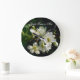 Elevate your home decor with the dramatic elegance of Dark Botanical Art. This sophisticated wall clock features an exclusive, authentic macro photograph of delicate white plum blossoms glowing with luminous light against a deep, moody background.