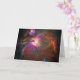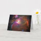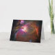 This space photograph shows the massive Orion Nebula, and was taken by the Hubble Space Telescope. The Orion Nebula is the birthplace of many new stars, and over 3000 stars are present in this image, surrounded by swirling clouds of gas and dust. The colours of the original photo have been enhanced slightly, and include rich oranges, pinks and purples.
