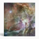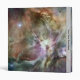 An absolutely stunning cosmological image of the Orion Nebula, a composite of images from the Hubble and Spitzer Space Telescopes, resulting in a space rainbow of gorgeous pastel colors.