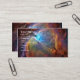 A business card or the Orion Nebula is a colorful formation of clouds and dust scattered throughout the galaxy that creates new stars. These massive, young stars give shape to the nebula with pillars of dense gas that may be the homes of more budding stars. The Orion Nebula is revealed in vivid detail in the adjacent image, which combines images at visible and infrared wavelengths measured by NASA's Hubble Space Telescope and Spitzer Space Telescope.