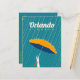 An orange umbrella held in one of Orlando's frequent afternoon showers.