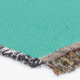 A quality printed throw has its advantages. This is a much finer weave throw than its loopier cousins, and though lighter, it is worth the investment for custom room accessorizing. The back is much prettier than the typical brown, and the fringe on the long sides very vivid, the selvage nicely done. Before photographing, I washed the throw in cold water, delicate, with a thicker woven throw the same size. On tumble dry low, this throw was dry in half the time as the other. This is a very practical quality if you use throws for furniture covers or to wrap up in frequently. The sleekness of the fabric makes it a great layer for accenting or protecting without the feeling of sitting on too much stuff. Perfect for napping or when you feel a light chill coming on. The color printing is beautiful and on this fabric, matched the design and color of my Photoshop image. This is an advantage for blending room fabrics and colors. The fringe on the short sides prints the colors from the design image and therefore varies from the side fringe. I streaked a white fractal line through the plaid pattern to give the illusion of weaving. This printed as crisp as an illusory thread, and put some white in the short side fringe, showing another advantage of print vs loomed- for artistic purposes, line lines, detail, and color integrity can be planned and preserved. My loomed throws have color limitations and more of a needlepoint texture. Print throws reproduce an exact image. The throw felt a little stiff straight out of the package, but this went away in the first delicate wash. Of course I searched the wash water for ink or bleeding and there was none.