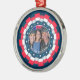 Keep your hero close to your heart and on display with this Custom Photo USA Military Ornament. This premium circular ornament features a dynamic, 3D-effect pleated ribbon border in patriotic red, white, and blue, encircling a navy blue frame filled with white and teal stars. The centerpiece is a dedicated photo upload area, allowing you to feature a portrait of an active-duty soldier, a beloved veteran, or a special military memory.