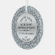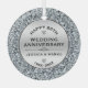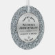 Elegant silver circle frame background for custom black text 25th wedding anniversary commemorative. White diamonds image circle frame with diamonds shaped like a heart. 25th Wedding Anniversary is text design with diamonds and metallic silver images.