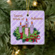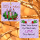 Our square violet ornament for the Fourth Week of Advent features an Advent wreath on the front atop a pattern of white diagonal stripes containing the word LOVE. Love is the theme of the week. A heartfelt sentiment appears on the back. + Front: The Advent wreath is made of evergreens and holly with all four candles depicted lit. The background is violet (or light purple or lilac) because it is the liturgical color of the pre-Christmas season. The mood having shifted last week from penitence, reflection, and preparedness to joy at the coming of the Savior, the color violet now emphasizes the royalty of Jesus as Son of God, Son of David, and King of Kings. + Image Credits: Black and white Advent wreath AI-generated by mimicoloringdesigns via Pixabay, modified and colorized by Saints_Aplenty; bow by Elionas also via Pixabay. + Back: A wish for LOVE that can be personalized.