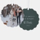 Bring Scandinavian charm to your holiday greetings with this minimalist forest green ornament card. Featuring the quote “all is merry and bright” in modern typography paired with a handwritten script for your family name, this design blends festive warmth with calm simplicity. The dark forest green background and white lettering create a clean, timeless contrast that complements both traditional and modern décor. Printed on superfine eggshell or matte paper with an elegant scalloped edge, it’s designed to be both a keepsake ornament and a stylish Christmas card. Easily personalise in Zazzle’s design tool by adding your photo, greeting, name, or year. A trendy and understated design that captures modern Scandi elegance for the festive season. The image shown is for illustration purposes only to be replaced with your own photo. The placeholder image is of a happy young couple collecting wood in the snow with thier dogs, a husky and a small terrier.