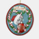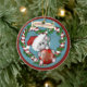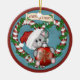Christmas mouse wearing a Santa hat round ornament. Personalized for your child
