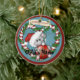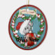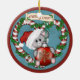 Christmas mouse wearing a Santa hat round ornament. Personalized for your child