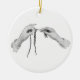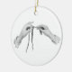 Lightweight, smooth, pure white ornament with nice sheen. Perfect size to be seen from across the room ... and to attract closer inspection! Price was great for ordering enough for the whole family! Clear, bold black design just as requested. Matches the order exactly. Just so nice!