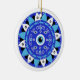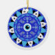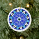 This review is for a ceramic circular-shaped ornament with the customer's design on both sides. The customer may have one design on one side, and a different design on the other side. The ornament is made of white porcelain. It has a gold cord with which the ornament is attached to a Christmas tree or other object.