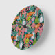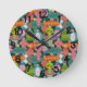 This wall clock has a Christmas design of a jumble of various ornaments in many colors.