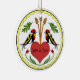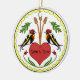 Folksy yet stylish ornament with our Long, Happy Relationship Hex design. Two distelfinks, representing good luck for the couple, are perched on a red heart representing lasting peace and purity in their friendship. Orange shafts of wheat stand for abundance in career and family. Green oak leaves represent growth, fertility and strength. Small red tulips invoke passion in faith, hope and trust in one's partner. Bound by yellow scallops, symbolizing good health and smooth sailing in life, this hex is the perfect blessing for a long, happy relationship. Text is fully customizable and the back may be customized as well.