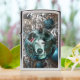 A photograph of a blue ornament on a silver pom-pom / aluminum tinsel Christmas tree has been converted into a template showing a photo as a reflection inside the ornament. The transparent sections have a slight bluish pattern in order to better match the color of the ornament. The stock photo used in this design is an older photograph of one of my dogs. The image is set to fill in. this should prevent edges from falling inside the cut-out portions of the bulb. The design is left customizable if you should need to reposition your photo.