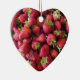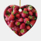Luscious, delicious, summer strawberries! Believe it or not, these fabulous fruits are actually a member of the Rosaceae or ROSE plant family. Unlike the flower, however, they are in the fragaria genus. Botanically, strawberries are not considered berries at all because the seeds are on the outside of the flesh; with each strawberry carrying an impressive (average) 200 seeds. There are lots of myths, legends and stories associated with the strawberry and its origins. One of the most common is that when Adonis died, Venus cried so much her tears fell to earth, turning into small, heart-shaped red berries . . . strawberries. Strawberries are thought to bring love and luck. However, one superstition about these glorious berries, maintains that eating too many strawberries when you are pregnant will result in strawberry birthmarks on the baby. Historically, however, strawberries were used by Native Americans in breads -- something that the settlers adopted that eventually evolved into what we now enjoy as Strawberry Shortcake. This favorite, summertime fruit is beautifully depicted in this photographic print on this gorgeous ornament. A wonderful, if unexpected, addition to your holiday tree, this delightful ornament is also a terrific decoration for gift packages and baskets . . . especially (of course) a basket full of scrumptious, summer strawberries.