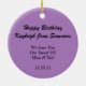 Lightweight, smooth, pure white ornament with nice sheen. Perfect size to be seen from across the room ... and to attract closer inspection! Price was great for ordering enough for the whole family! Clear, bold black design just as requested. Matches the order exactly. Just so nice!