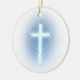 Lightweight, smooth, pure white ornament with nice sheen. Perfect size to be seen from across the room ... and to attract closer inspection! Price was great for ordering enough for the whole family! Clear, bold black design just as requested. Matches the order exactly. Just so nice!