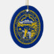 Crafted with attention to detail, this ornament honors Nebraska's rich heritage and values. The design proudly showcases the state's flag, featuring a blue field with the state seal in gold and silver. The seal includes a steamboat sailing on the Missouri River, a blacksmith with his hammer and anvil, a settler's cabin, and the state motto "Equality Before the Law," symbolizing Nebraska's history of progress and prosperity.