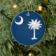 Celebrate the spirit of South Carolina this holiday season with a beautiful Christmas ornament featuring the iconic flag of the Palmetto State. This exquisite ornament showcases the striking indigo blue flag adorned with a white palmetto tree and crescent, symbols of South Carolina's rich history and heritage. Crafted with care, this ornament is designed to add a touch of Southern charm to your Christmas tree or holiday decor.