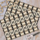 Abstract tissue paper design featuring a decorative pattern composed of geometric shapes in black and beige.