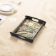 This is a well made, sturdy wooden tray with a flawless black finish and lovely map on the tray surface. It is both vintage & modern at the same time. Looks exactly like the photo; does not disappoint. So nice to find something of quality individually made and not the mass-produced 'shabby chic' merchandise seen in stores. I am so pleased to be able to give this to my college-age niece for her birthday. This can be used as a tray to hold jewelry or toiletries, or hung on the wall as art. The map surface is sealed (it is slightly shiny) so would be moisture resistant. It is well worth the asking price but I was able to apply a sale code as well. Very happy with my purchase. Map is crisp & clear and sealed with a water-resitant finish.