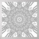 This coloring page features a highly detailed mandala built from a combination of curved scroll-like forms and sharply defined geometric layers. At the center, a compact circular core expands into a ring of evenly spaced rounded shapes, creating a steady visual anchor. Surrounding this, sweeping curved motifs interlock with angular lines, forming a repeating pattern that feels both fluid and structured. Fan-like segments and fine line textures add depth between the larger elements, while the outer sections extend into elongated, faceted shapes that resemble cut gemstone planes. Small clustered accents fill the gaps, maintaining a continuous flow throughout the design. The balance between smooth curves and crisp angles makes this piece especially engaging to color, offering opportunities for layered shading, contrasting tones, or precise color blocking across its many repeating sections.