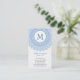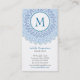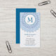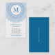 Call attention to a monogram by surrounding it with this intricate ornament in tones of blue and cyan. All the business information prints underneath with optional text printing on the reverse against blue. Suitable for many business types. Available in alternate colors with matching products.
