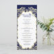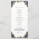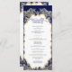 This wedding program card features a minimalist design in classic navy blue and gold. The front highlights the couple’s names inside a golden frame set against a deep navy background, giving a formal and sophisticated touch. The back page presents the complete wedding details in a clean, modern layout accented with subtle golden highlights. The timeless pairing of navy blue and shimmering gold creates an elegant and distinguished design, perfect for formal ceremonies and keepsake stationery.