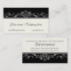 Ornamental scrollwork border black, ivory business card template, featuring a beautiful black ornamental border with white scrollwork and a dotted line on a black stripe on ivory background. This elegant design has a vintage feel to it. It is perfect for personal or professional use. Just change background color- black- to color of your liking.