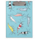 This colorful group of fancy ornamental shrimp is perfect for freshwater aquarium keepers who keep or breed shrimp in their fish tanks. The clipboard features hand-drawn blue bolts, cherry shrimp, yellow shrimp, red tiger, bumblebee and ghost shrimp.