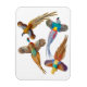 Original fine art design of colorful flying pheasants including Ringneck, Lady Amherst, Reeves and Golden varieties by artist Carolyn McFann of Two Purring Cats Studio printed on a premium magnet for wild game bird fans.