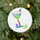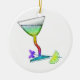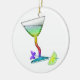 BUTTERFLY MARTINI "THE GLASS ISN'T HALF EMPTY OR HALF FULL - IT'S SIMPLY IN NEED OF A REFILL!" A rainbow colored martini glass etched with butterflies, filled half full, garnished with a lime wedge on a butterfly pick.