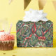 A luxurious paper in subtle hues printed with large ornaments decorated with holly, in a design with satiny red and white thin ribbons and bows foliage of the Christmas tree with powdery white snow. In most instances I use a matte finish for wrapping paper, but in this case glossy paper has stronger color. Seamless image.