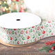 Perfect for wrapping gifts, tying around napkins or treat bags, trimming wreaths, or adding flair to party decor, this ribbon combines classic ornament motifs with a fresh, modern look. The white background keeps the style clean and bright, letting the rich red, green, and greenery details shine.