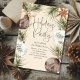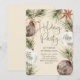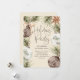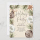 A gathering of rustic ornaments and firs headlines this boho style holiday party invite.