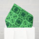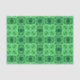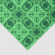 Tissue paper in an ornate, geometric arabesque pattern in shades of dark emerald and mint green
