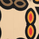 This peel and stick wallpaper features a symmetrical and repetitive pattern. Geometric and floral motifs intertwine, creating an ornate composition. The color palette includes shades of black, beige, red, orange, and yellow. At the heart of the pattern lies an eight-petaled, flower-like shape in beige, outlined in black. Surrounding it are smaller decorative elements resembling leaves and petals.
