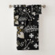 Ornate black and white floral pattern bath towel set