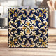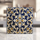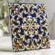 This beautifully ornate tile showcases intricate scrollwork patterns in rich navy blue, accented by golden and white details for a timeless, luxurious aesthetic. The symmetrical design is perfect for creating an elegant backsplash, statement wall, or decorative focal point in your home. With its classic appeal and detailed craftsmanship, this tile is ideal for both traditional and contemporary spaces. Its vibrant colors and intricate detailing make it a versatile choice for enhancing any decor.
