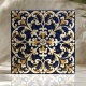 Ornate Blue and Gold Scrollwork Ceramic Tile